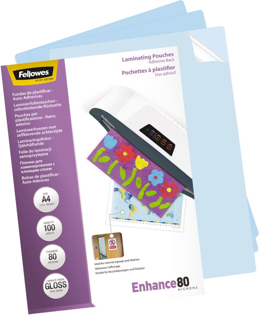 Fellowes 100 pochettes à plastifier A3- 80µ - dos adhésif (100x)