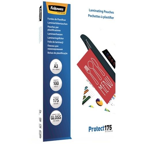 Bescherm en bewaar uw documenten met Fellowes premium kwaliteit lamineerhoezen. Deze lamineerhoezen met een glanzende afwerking zijn beschikbaar in de diktes 80, 100, 125, 175 en 250 micron voor alle niveaus in documentbescherming, dit maakt deze hoezen ideaal voor het lamineren van notities, foto's, instructiematerialen en veelvuldig gebruikte documenten. Beschikbaar in verschillende standaard formaten van A2 tot A5. Fellowes lamineerhoezen bieden 100% Jam Free prestaties bij gebruik in combinatie met een Fellowes lamineermachine.